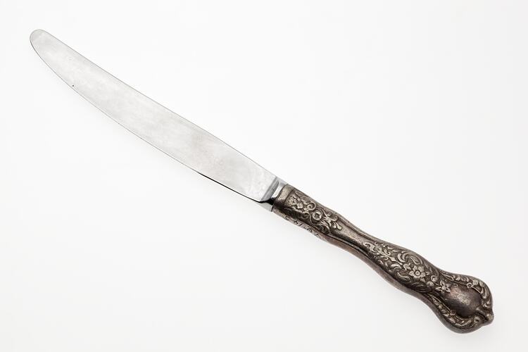This stainless steel dining knife is part of the furnishing and equipment used at Florentino Restaurant in Bourke Street Melbourne, during the time of Branco Tocigl's ownership from 1979-1989.