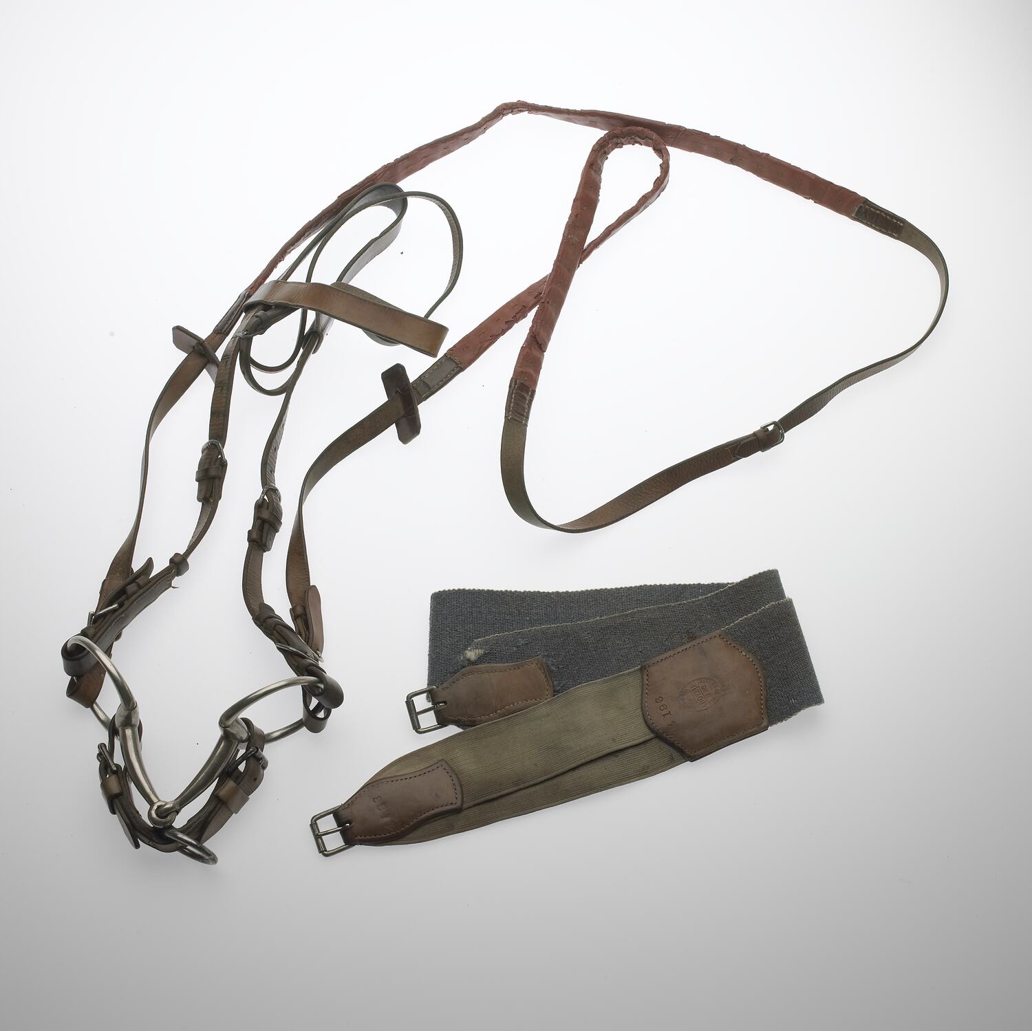 This brown leather and metal tack was part of a collection of Phar Lap's equipment which had been keep in a suitcase by his strapper Tommy Woodcock as a memorial to his beloved friend.