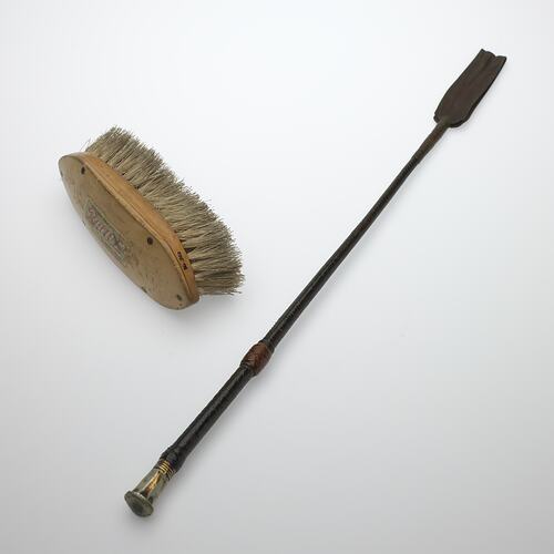 This wooden horse mane and tail brush was part of a collection of Phar Lap's equipment which had been keep in a suitcase by his strapper Tommy Woodcock as a memorial to his beloved friend.