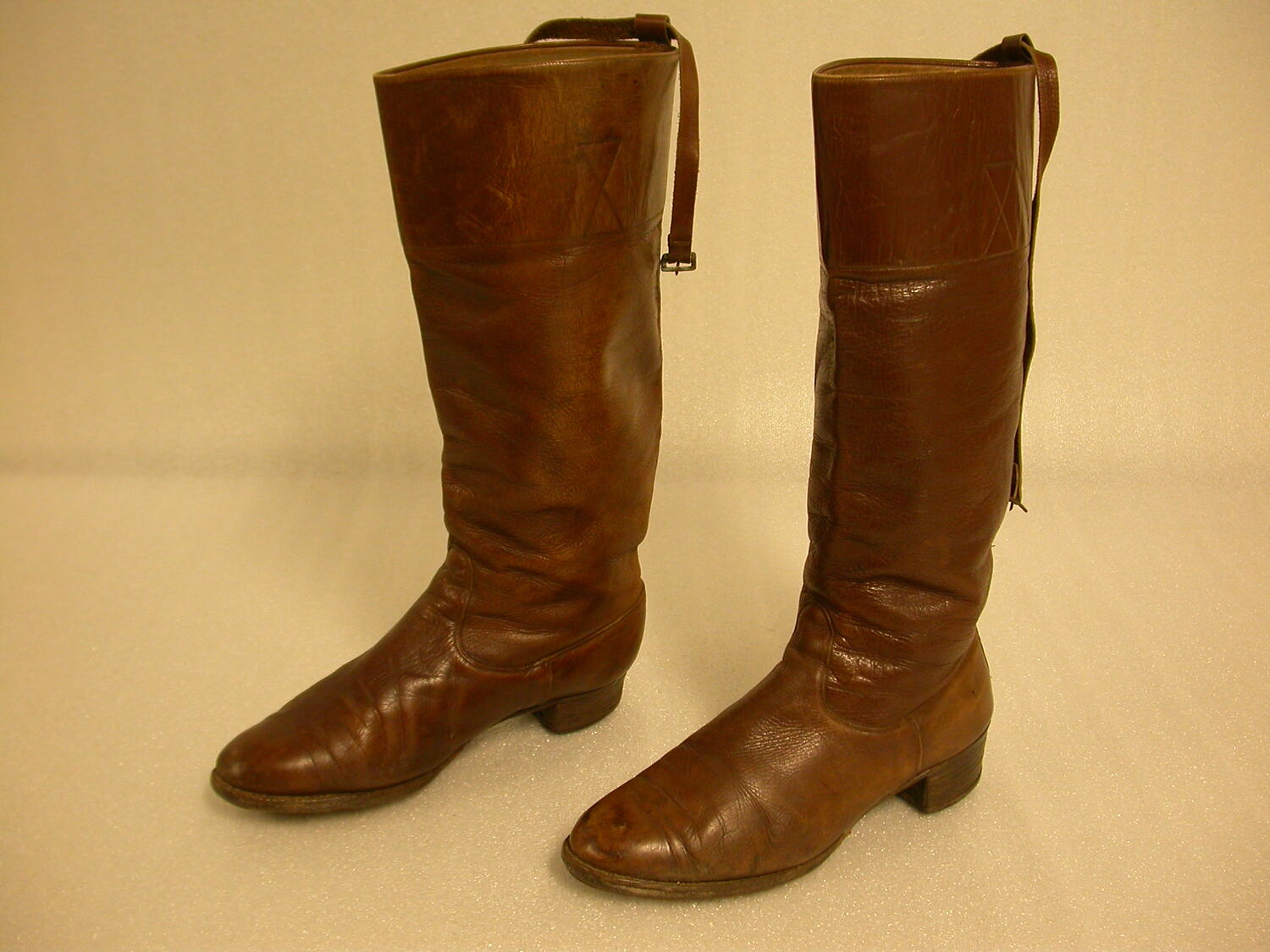 Pair of brown leather woman's riding boots. Used circa 1920 - 1950.