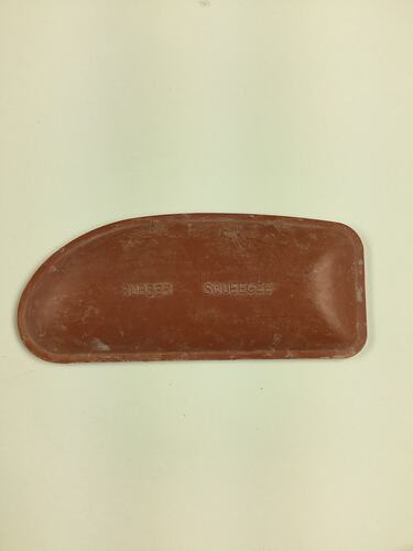 Brown rubber clay tool, flat with one round and one flat end, used for making plaster moulds for the production of a Jewish Havdalah set consisting of a Kiddush cup, spice container, and candleholder. It was used by Melbourne artist Ede Horton in her home studio in Camberwell in 2010.