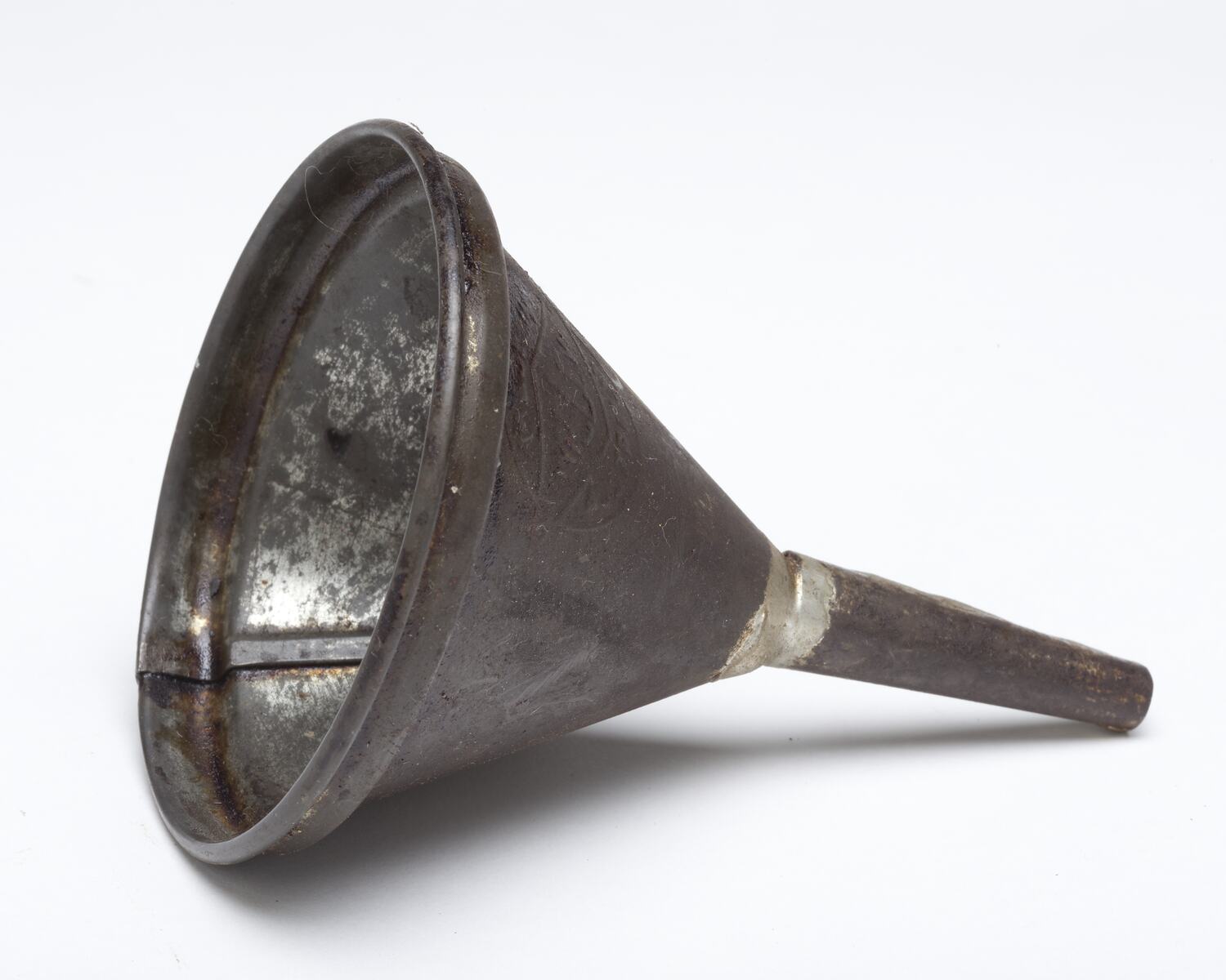 Metal Funnel, manufactured by Willow Ware in Australia. It was purchased by Vincenzo Candela and his wife Emanuela Nigro after their migration to Australia in 1920. The Candelas made much of their own food including homemade pasta, tomato sauce, wine, sausages and they roasted their own coffee. Items that could not be purchased in Australia were often ordered by mail from the Italian manufacturer. This was a practice common in both Italy and Australia. Vincenzo also received catalogues from Italy after his migration to Australia.