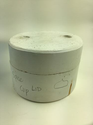 Mould used for duplication in the process of making the lid of a spice cup, part of a Jewish Havdalah set consisting of a Kiddush cup, spice container, and candleholder. It was used by Melbourne artist Ede Horton in her home studio in Camberwell in 2010.