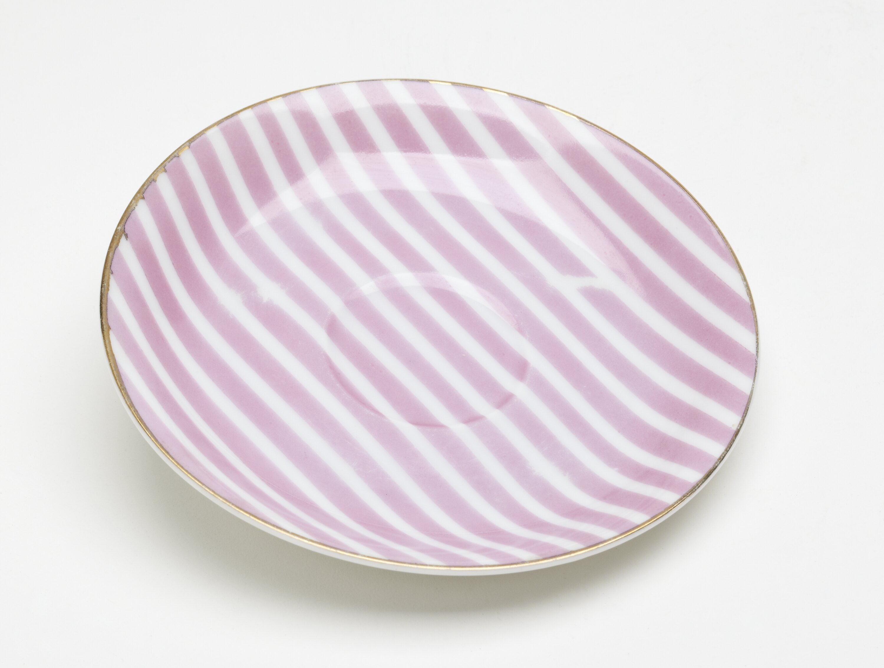 China saucer with pink and white stripes.