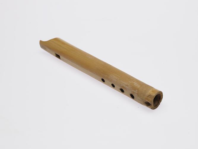 It is one of a collection of ten hand-made items which also includes seven models of the farming equipment Domenico Annetta used as a subsistence farmer in Calabria, Italy before migrating to Australia in 1960. Domenico made them as gifts for his children and grandchildren to show them the tools and daily items he used as a farmer. The hand-made flute works. Domenico also crafted a small ship named 'Australia' in reference to the ship that he and his family travelled on when they migrated to Australia.