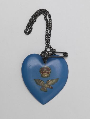 Sweetheart pendant made for Olga Cavedon (nee Andreetta) by Nick Stella while he was in the Air Force just before World War II, circa 1935. Sweetheart brooches and similar jewellery were made by members of the armed forces to send home to loved ones.