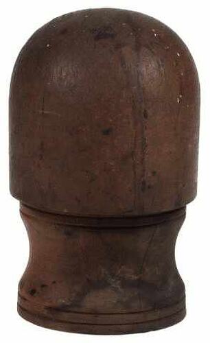 Small wooden hat block used to mould leather driving and flying helmets made at Simpson's Gloves Pty Ltd, Richmond. Made from Australian cedar by Robert Godfrey Pty Ltd, Melbourne, circa 1920s.