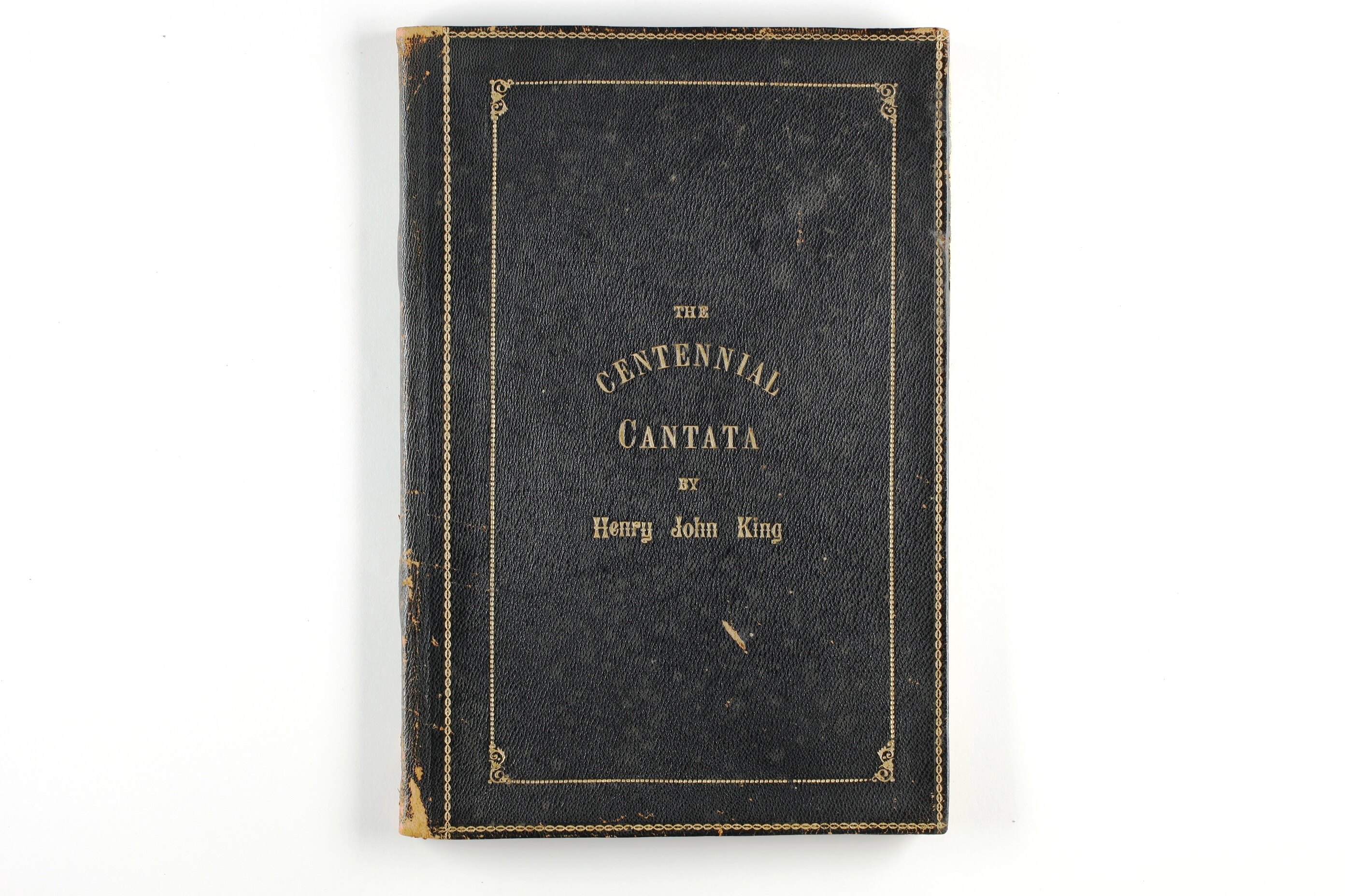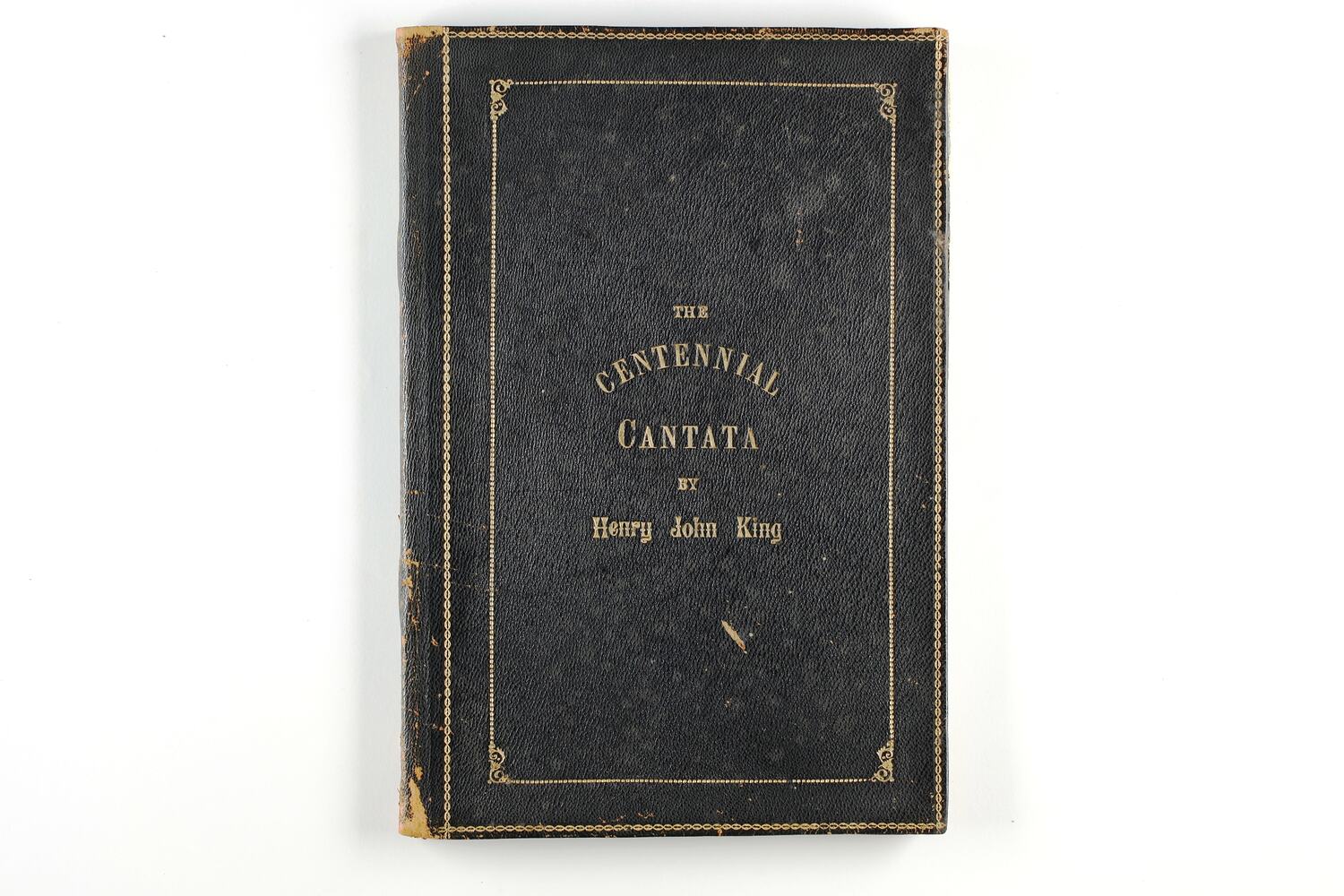 Front cover: THE/ CENTENNIAL/ CANTATA/ BY/ Henry John King Note inside front page, handwritten: Presented to Alberto Zelman one of the judges appointed by the Commissioners for selecting the Prize Cantata by W.H. Glenn C. the publishers of the same Melbourne 1st August 1888.