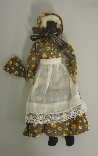 The doll was made by an 84 year old woman in Lincoln, Nebraska, USA. It was made in the 1960s and is modelled on the type of dolls her mother made for her when she was a child in pioneer Nebraska in the 1880s.