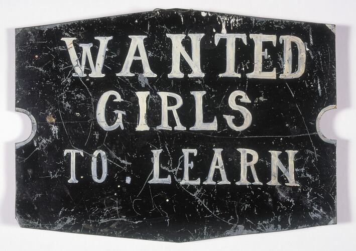 Sign, 'Wanted Girls to Learn', Simpson's Gloves Factory, Richmond, Victoria, circa 1950s.