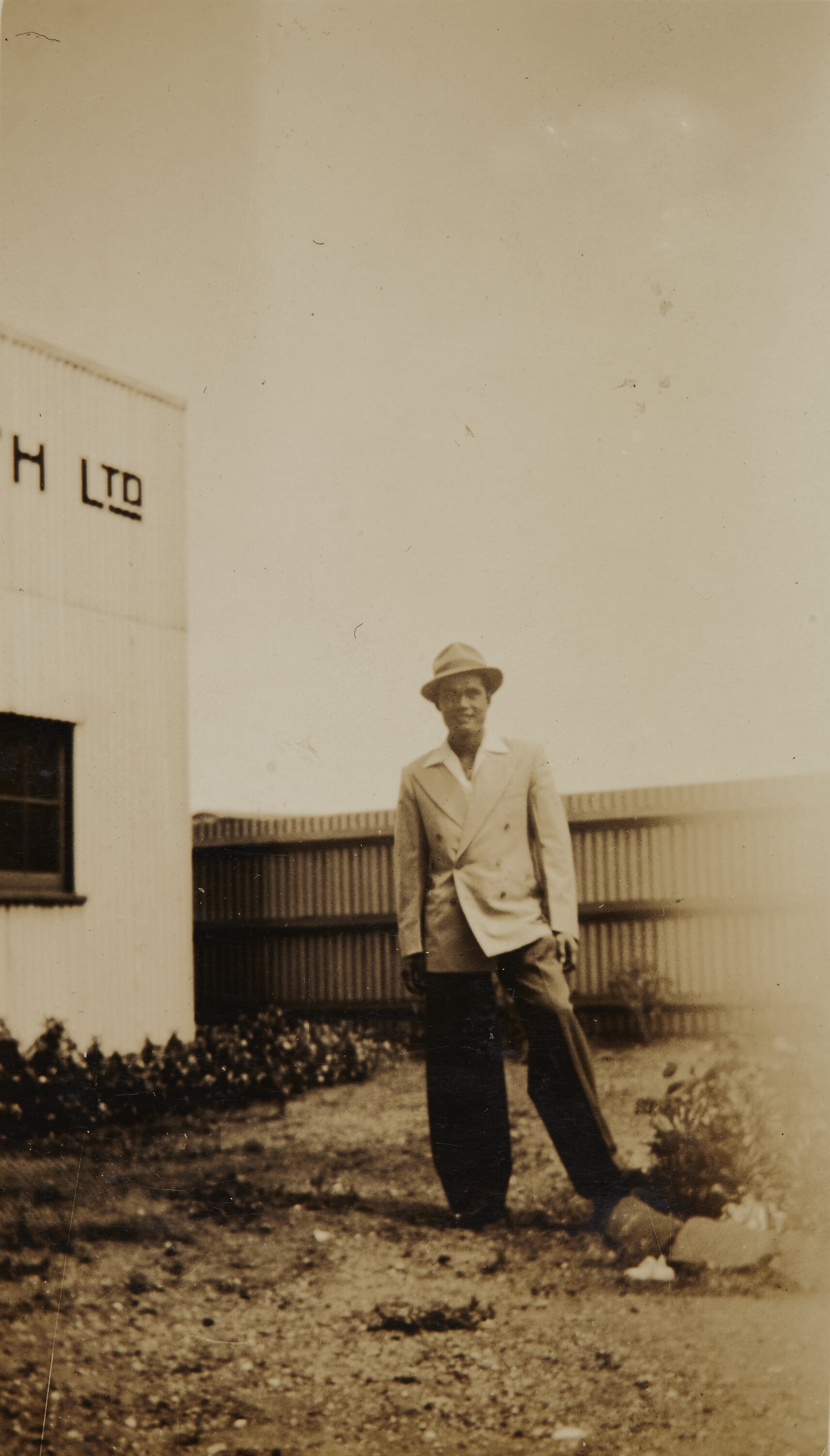 Digital photograph of Conrad Santos, location unknown, probably Melbourne, circa 1940s. Conrad was a friend of Agapito and Aileen Castillo and part of a community of men from the Philippines who married local Australian women during World War II. Philippines-born Agapito Castillo had married Aileen McColl in Melbourne while he was working for the British Phosphate Company and was detained there during World War II.