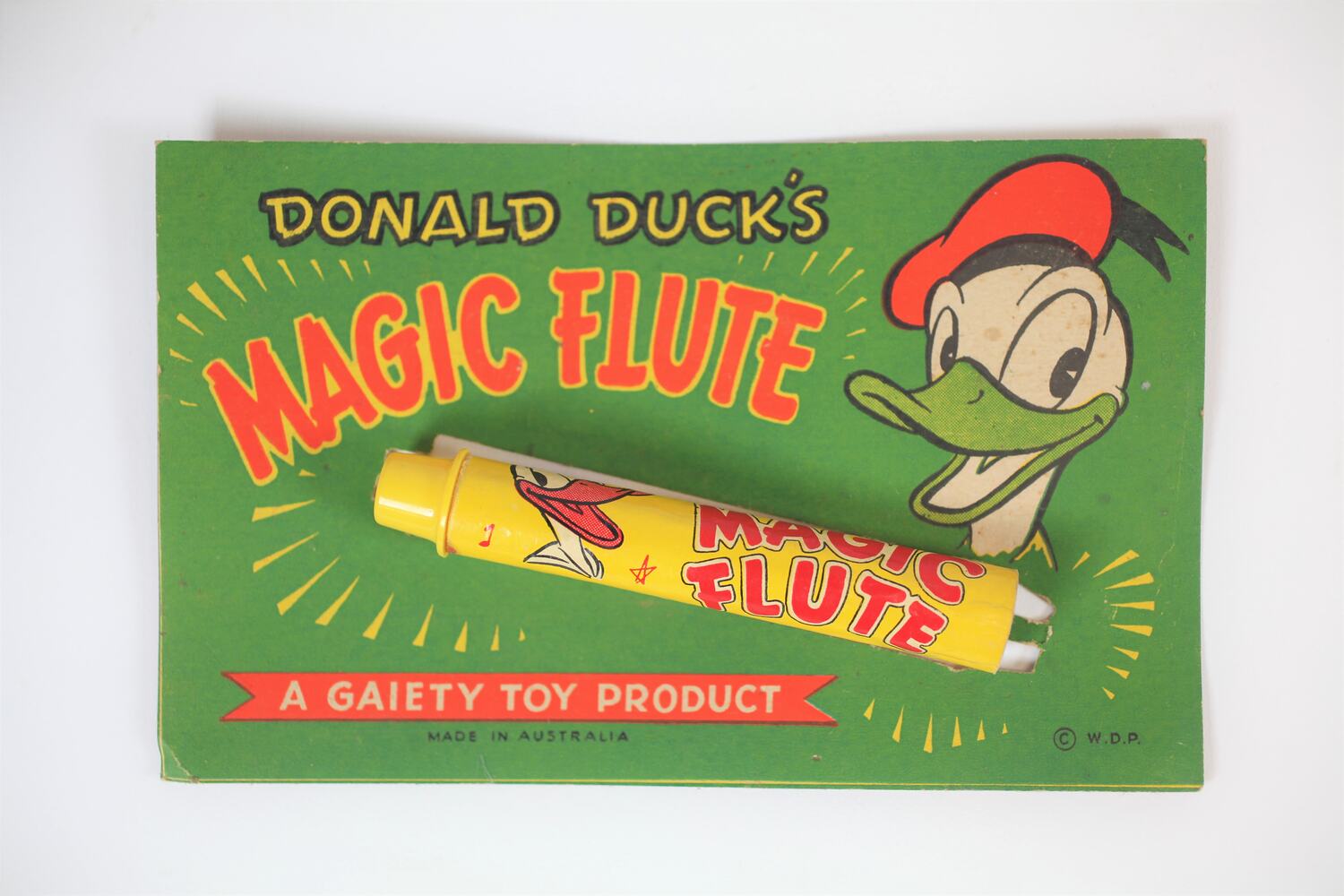 This object is a toy flute - 'Donald Duck's Magic Flute' - made under licence from Disney, circa 1950s.