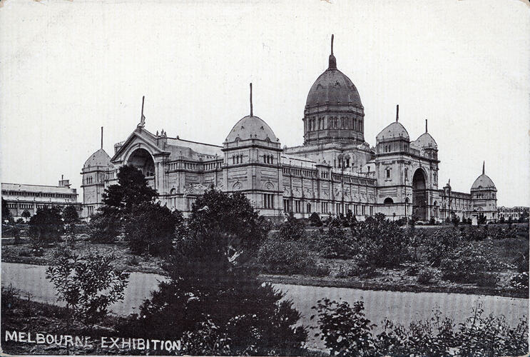 The Exhibition Building was built for the 1880 Melbourne International Exhibition, which opened to visitors on 1 October 1880. On 9 May 1901, it hosted the opening of the First Commonwealth Parliament of Australia. By the early 20th century, picture postcards of the Exhibition Building were a popular Melbourne souvenir.