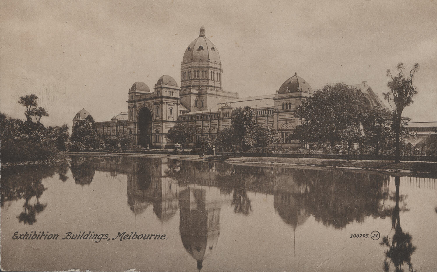 The Exhibition Building was built for the 1880 Melbourne International Exhibition, which opened to visitors on 1 October 1880. On 9 May 1901, it hosted the opening of the First Commonwealth Parliament of Australia. By the early 20th century, picture postcards of the Exhibition Building were a popular Melbourne souvenir.