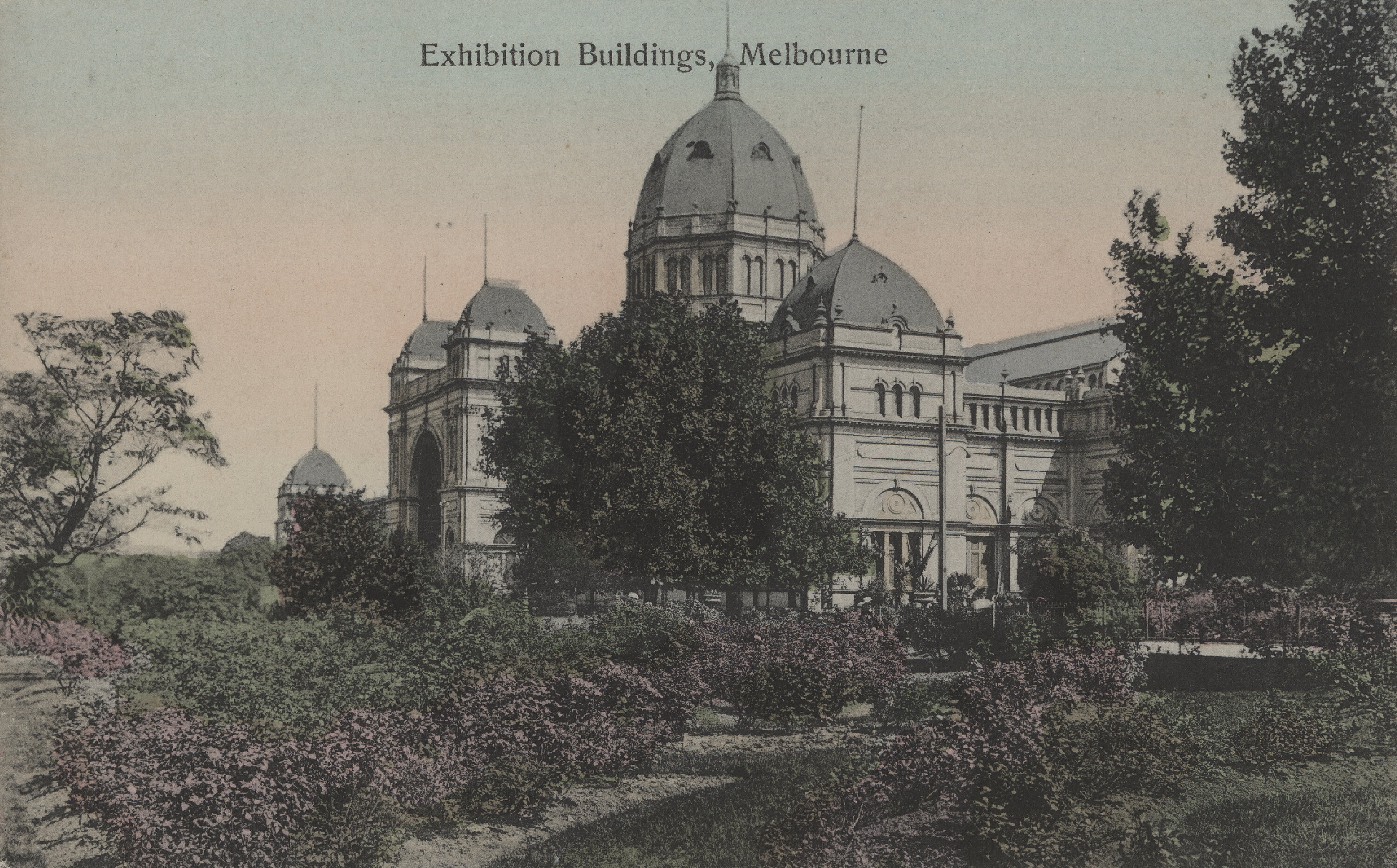 The Exhibition Building was built for the 1880 Melbourne International Exhibition, which opened to visitors on 1 October 1880. On 9 May 1901, it hosted the opening of the First Commonwealth Parliament of Australia. By the early 20th century, picture postcards of the Exhibition Building were a popular Melbourne souvenir.