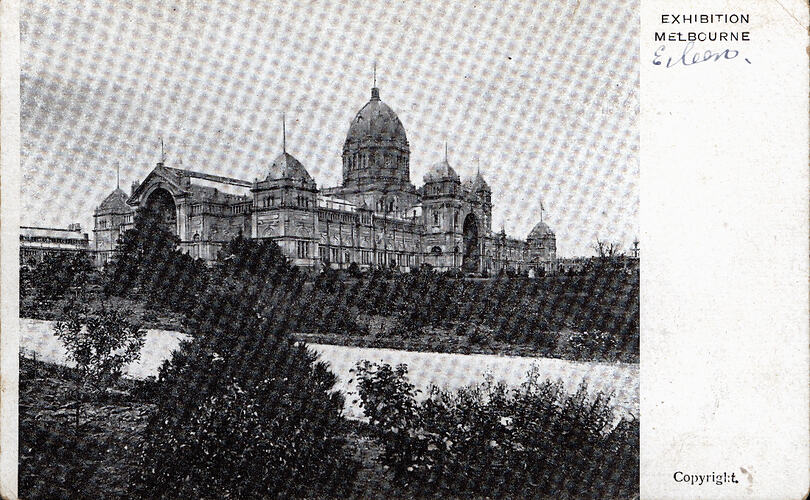 Buildings, Civic Mementoes, Correspondence, Exterior Views, Postcards, Royal Exhibition Building, Souvenirs