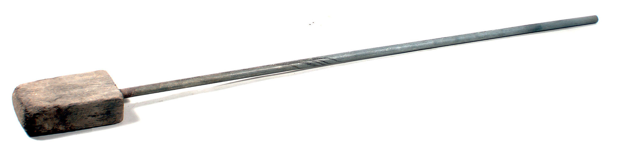 Hardwood block with a piece of metal pipe bolted through the centre, as the handle.