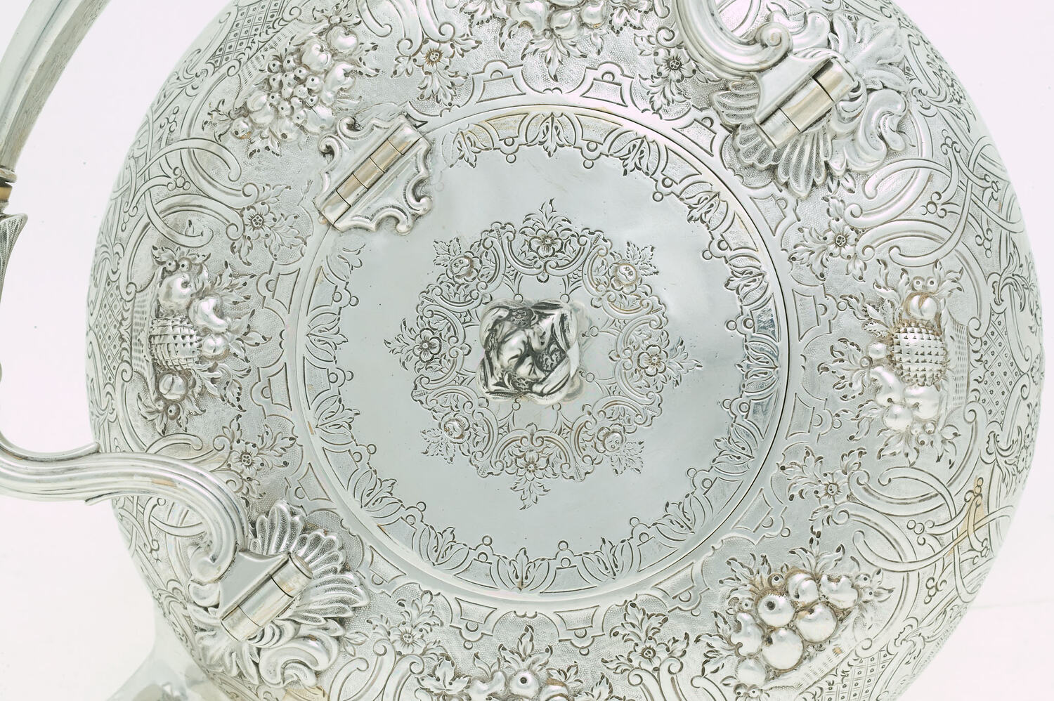 Kettle presented as part of a silver tea and coffee service in 1847 to William Westgarth, a Scottish merchant and financier who was returning to Britain after having played a prominent part in the civic life and affairs of the Port Phillip area from 1840-1847.