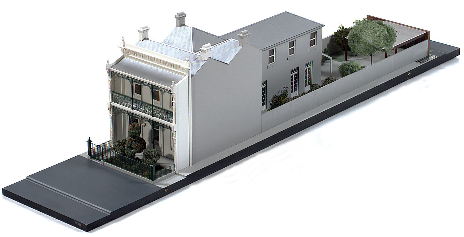 Model of a Terrace House, Victoria Avenue, Albert Park Victoria. Model depicts a two-storey, single-fronted terrace house built circa 1880. Such terraces are a typical housing type of inner-city Melbourne.