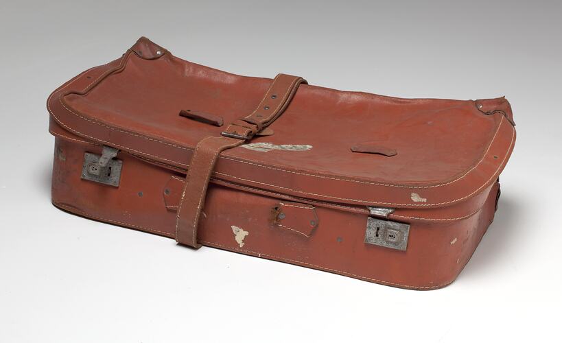 Una de las dos maletas utilizadas por la familia Pregal cuando emigraron a Australia desde Argentina en 1965. La familia decidió abandonar Argentina porque consideraban que Australia tenía más oportunidades, y porque el Sr. Pregal, que era de etnia calabria, ya tenía miembros de la familia que vivían aquí.