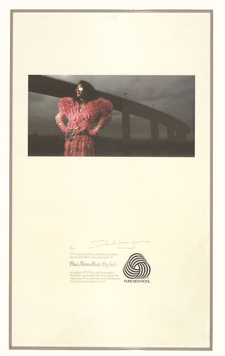 Awarded to Prue Acton P/L by the Australian Wool Corporation to acknowledge their support to the wool industry through their use of wool fabrics.