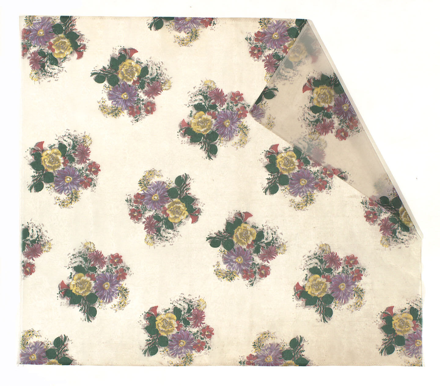 Floral nylon fabric remnant, from Steinberg Drapery, Carlton, circa 1950 - 1975.