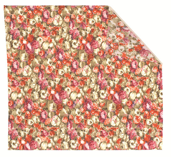 Cotton Floral Fabric Remnant, from Steinberg Drapery, Carlton, circa 1980s. This type of fabric would have been used for women's dressmaking.