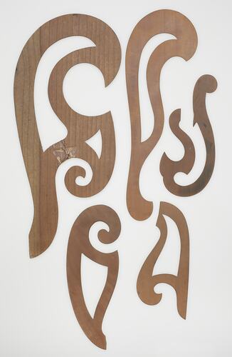 Set of five wooden stencils.