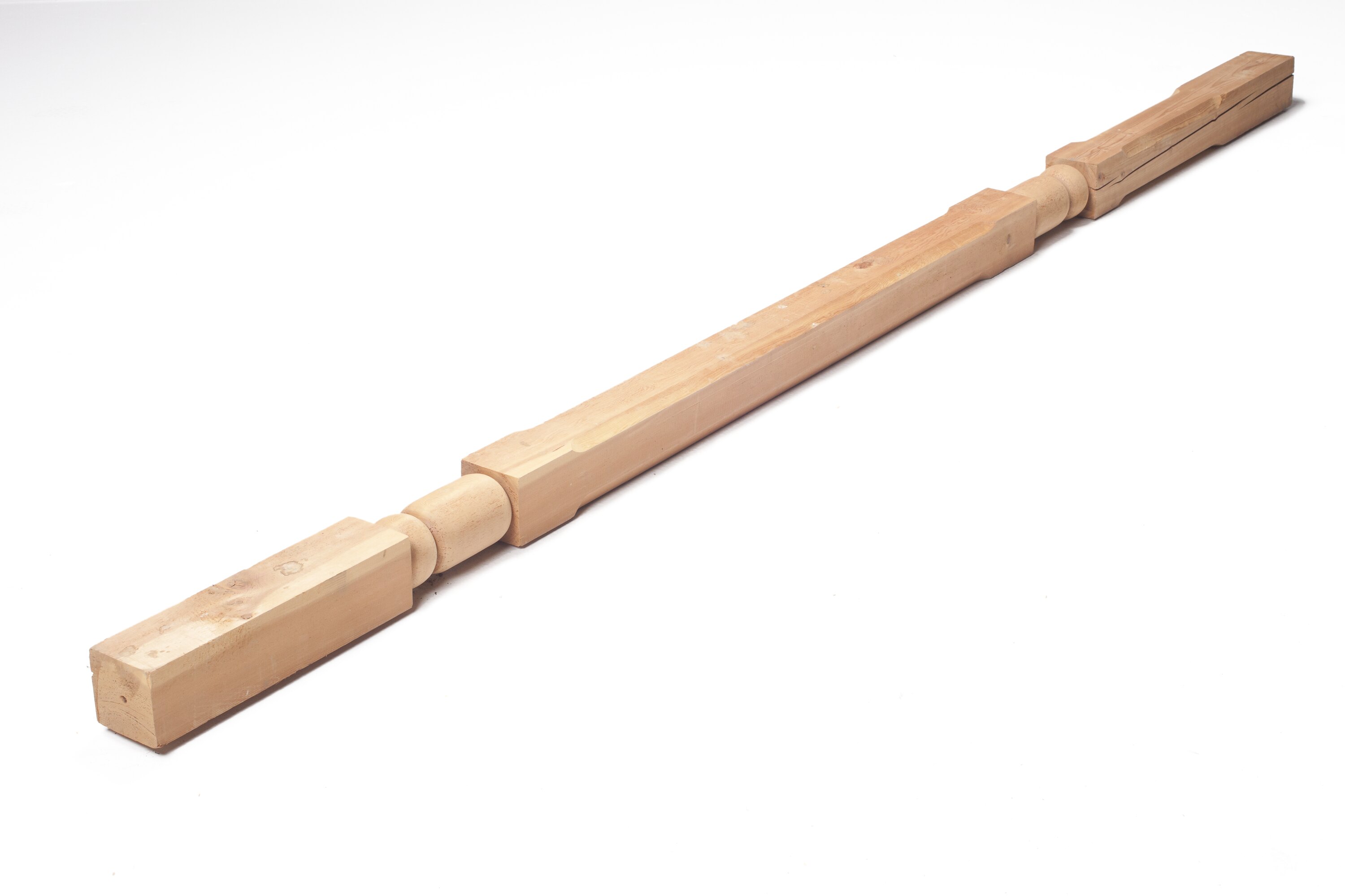 Verandah post manufactured by Adolph Bruhn & Son, circa 1970-1990. It was found in Area H at Adolph Bruhn & Son's Wood Turners Shop, 283 Coventry Street, South Melbourne. The business was established by Adolph Bruhn circa 1893 in Little Collins Street, Melbourne. Upon his death in 1919 it was then operated by Adolph's son Sophus Christopher Bruhn. Upon Sophus's death in 1959 his son Sophus Walter Bruhn took over the business. In 1970 Sophus reduced the scale of the business and relocated to South Melbourne. The business closed upon Sophus's death in January 1990.