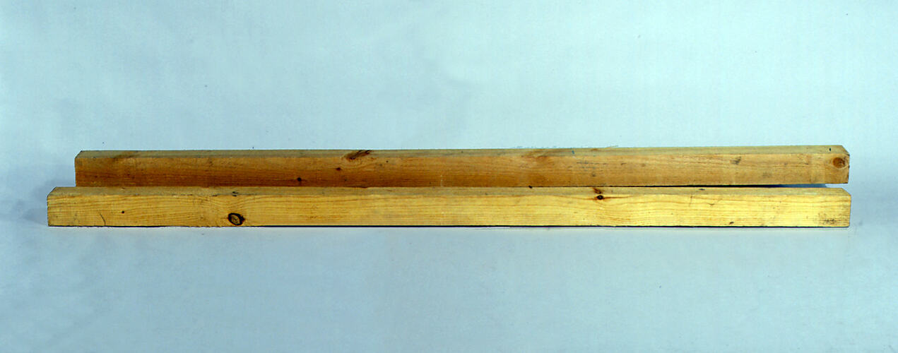 Long rectangular piece of light gold-coloured timber. Found in Area B2 of workshop.