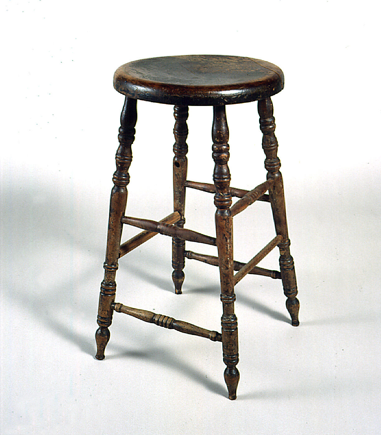 Wooden stool used at Simpson's Gloves Pty Ltd, Richmond, 1928-1980.