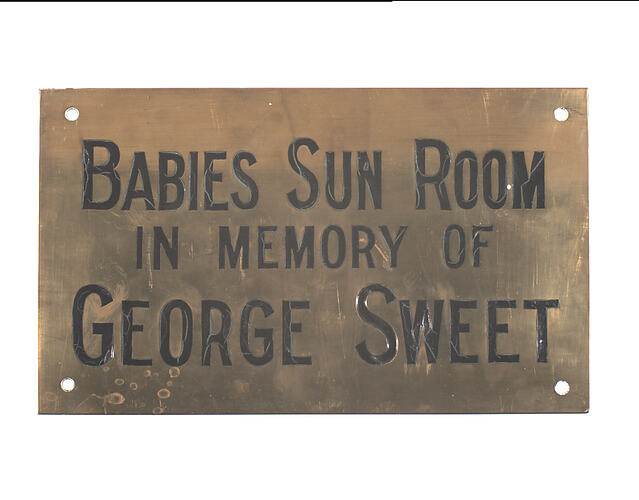Debossed text reads "BABIES SUN ROOM / IN MEMORY OF / GEORGE SWEET".