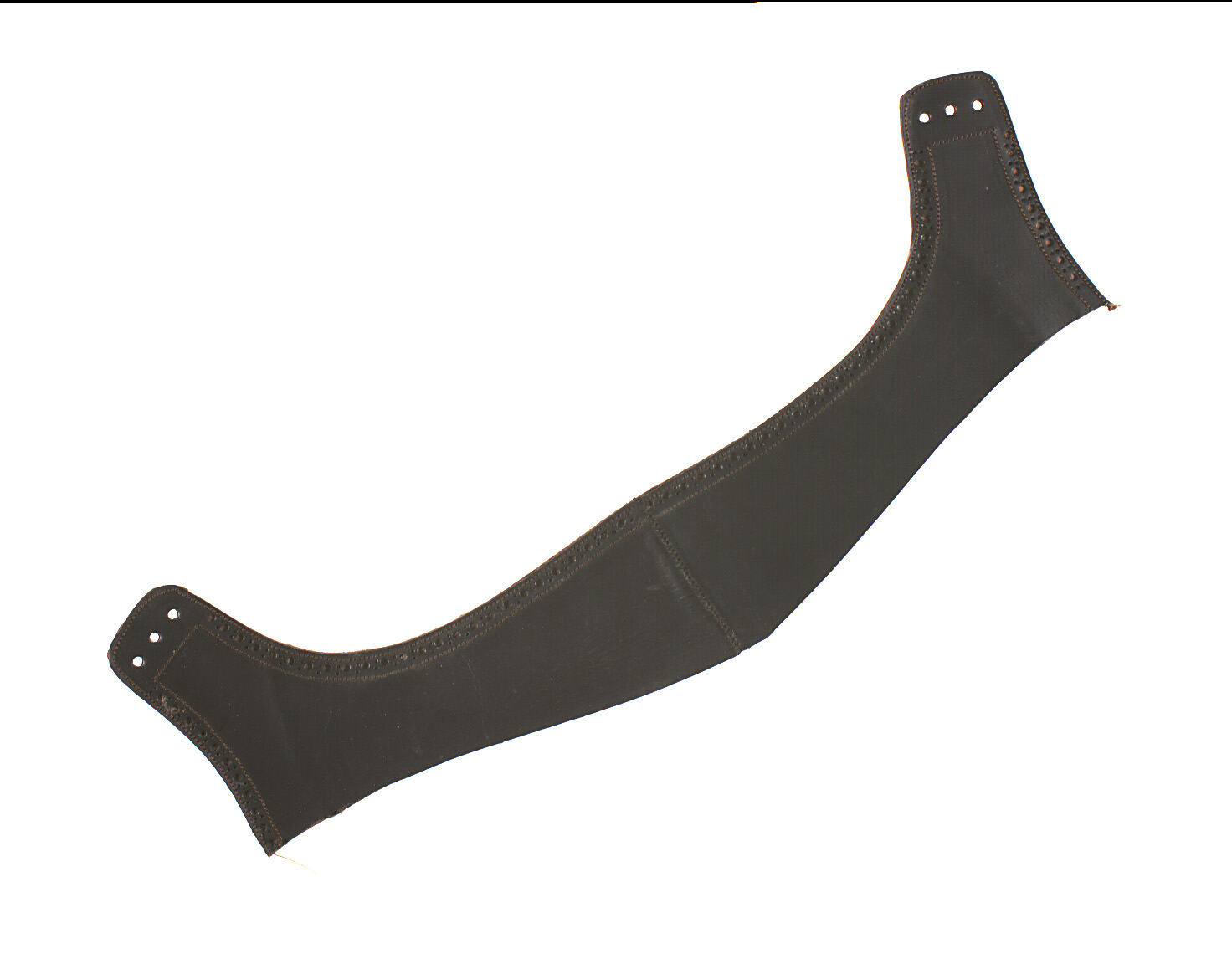 Unfinished brown leather shoe back sample made in Stafford, England, 1933. It was used at Simpson's Glove Pty Ltd and was found in a box in the shed above the air raid shelter. Amos Simpson had fiends in the boot trade, he attempted to assemble shoes but did not go into full manufacture.