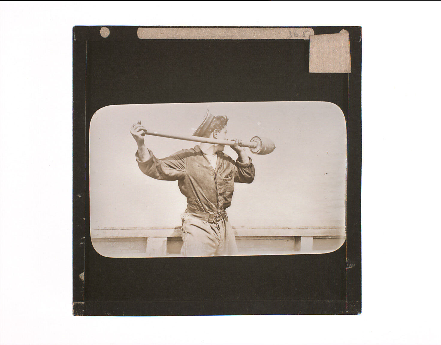 Standard format black and white Lantern Slide with black binding tape.