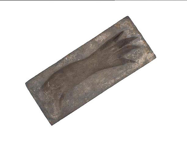 .1 Cloth formed mould of crocodile paw .2 Metal crocodile imprint mould