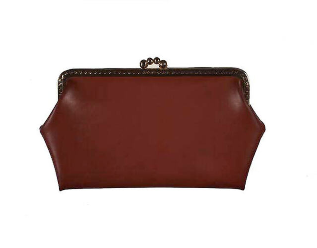 Red vinyl purse with gilt frame. Made by Simpson's Gloves Pty Ltd, Richmond, circa 1972.