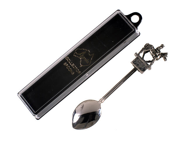 This boxed souvenir teaspoon is an example of the Phar Lap related merchandise sold in the Museum of Victoria shop in the 1980s.