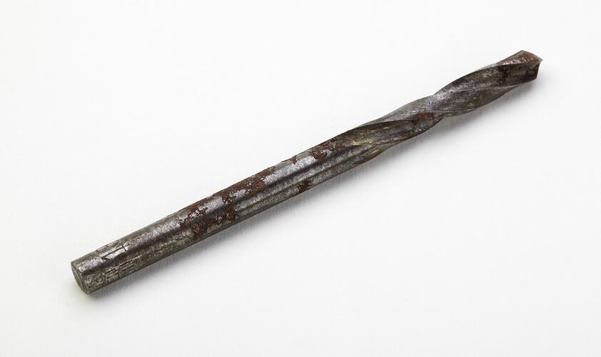 Twist Drill Bit made circa 1980s. It was used with a power drill and was found in a bit rack (SH 912379) in Area E4 at Adolph Bruhn & Son's Wood Turners Shop, 283 Coventry Street, South Melbourne. The business was established by Adolph Bruhn circa 1893 in Little Collins Street, Melbourne. Upon his death in 1919 it was then operated by Adolph's son Sophus Christopher Bruhn. Upon Sophus's death in 1959 his son Sophus Walter Bruhn took over the business. In 1970 Sophus reduced the scale of the business and relocated to South Melbourne. The business closed upon Sophus's death in January 1990.