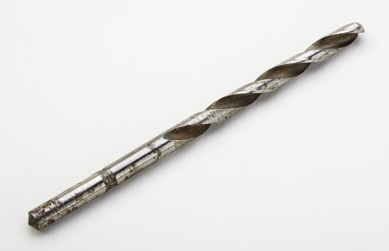 Twist Drill Bit made circa 1980s. It was used with a power drill and was found in a bit rack (SH 912379) in Area E4 at Adolph Bruhn & Son's Wood Turners Shop, 283 Coventry Street, South Melbourne. The business was established by Adolph Bruhn circa 1893 in Little Collins Street, Melbourne. Upon his death in 1919 it was then operated by Adolph's son Sophus Christopher Bruhn. Upon Sophus's death in 1959 his son Sophus Walter Bruhn took over the business. In 1970 Sophus reduced the scale of the business and relocated to South Melbourne. The business closed upon Sophus's death in January 1990.