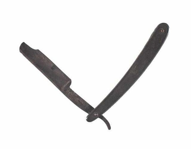 Straight razor used for shaving patients at the Lakeside Mental Hospital, Ballarat, Victoria, Australia, circa 1910. Made by R.I. Cadman & Sons Sheffield, England. Donated by Mrs D Richard of the Lakeside Mental Hospital, Ballarat.