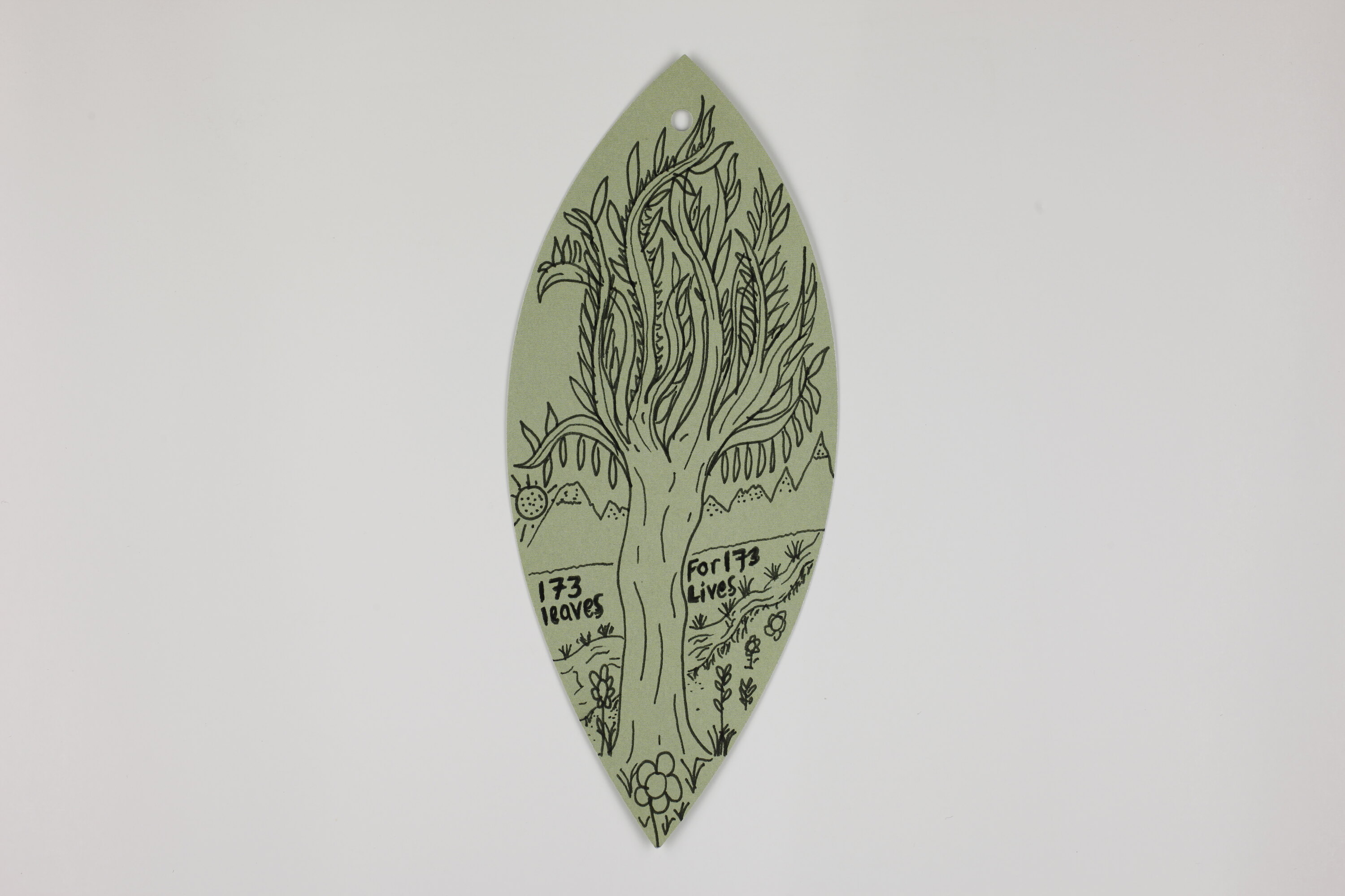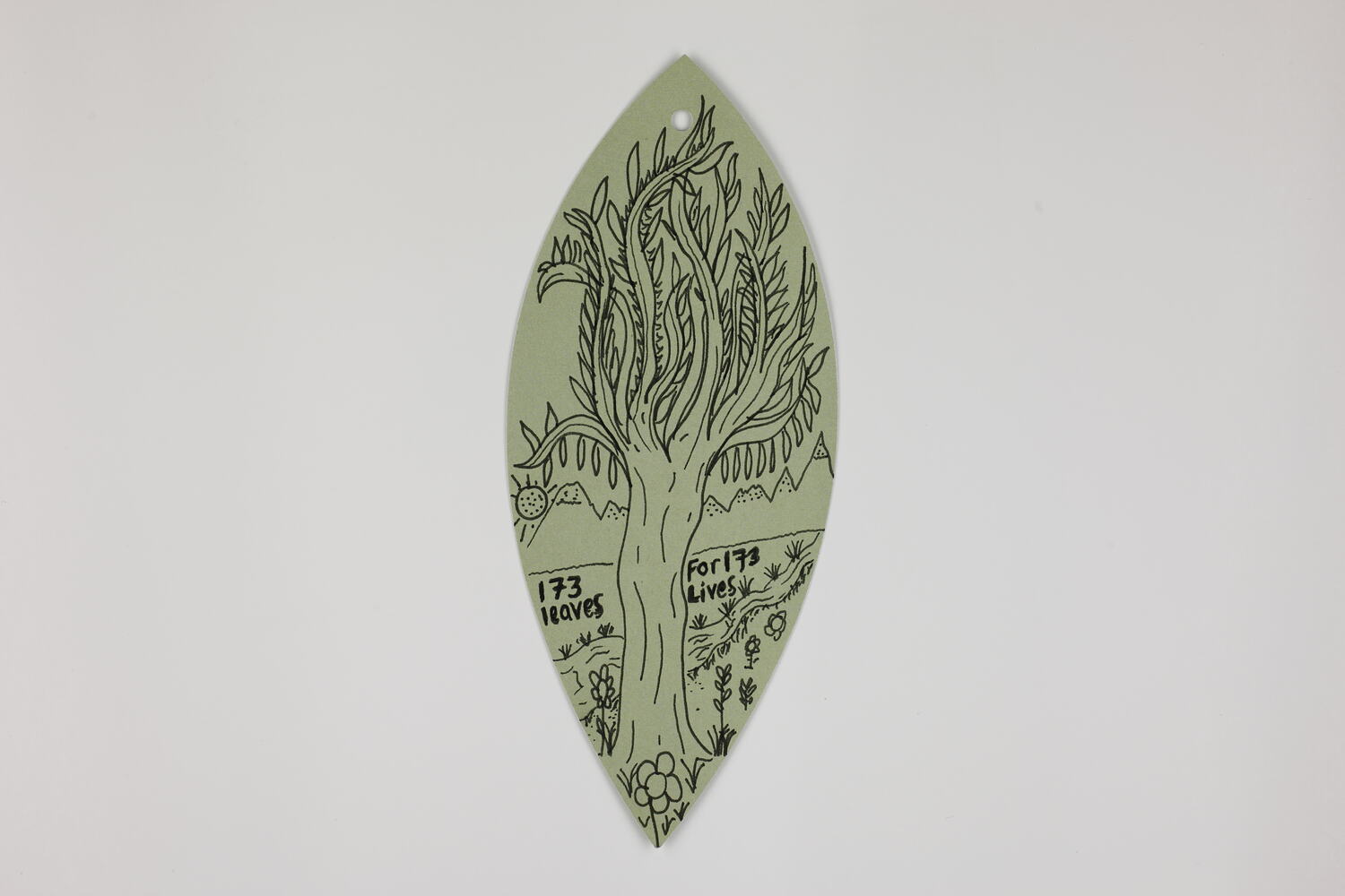 Paper leaf with a message written on it with an illustration of a tree with 173 leaves.