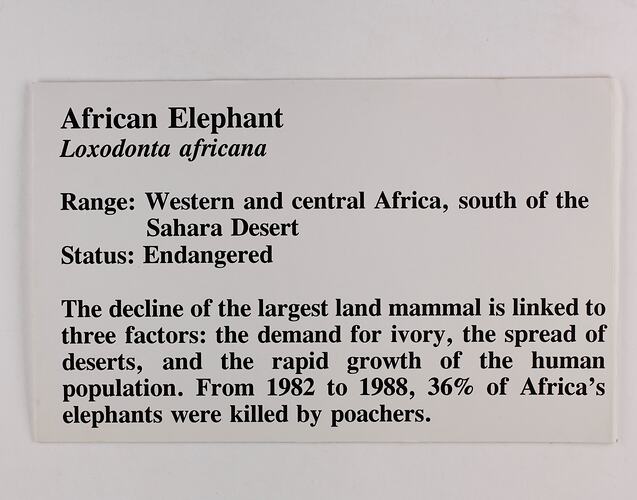 Exhibition label from "Endangered Mammals" display made for Museums Day, 1992, at the National Museum of Victoria.