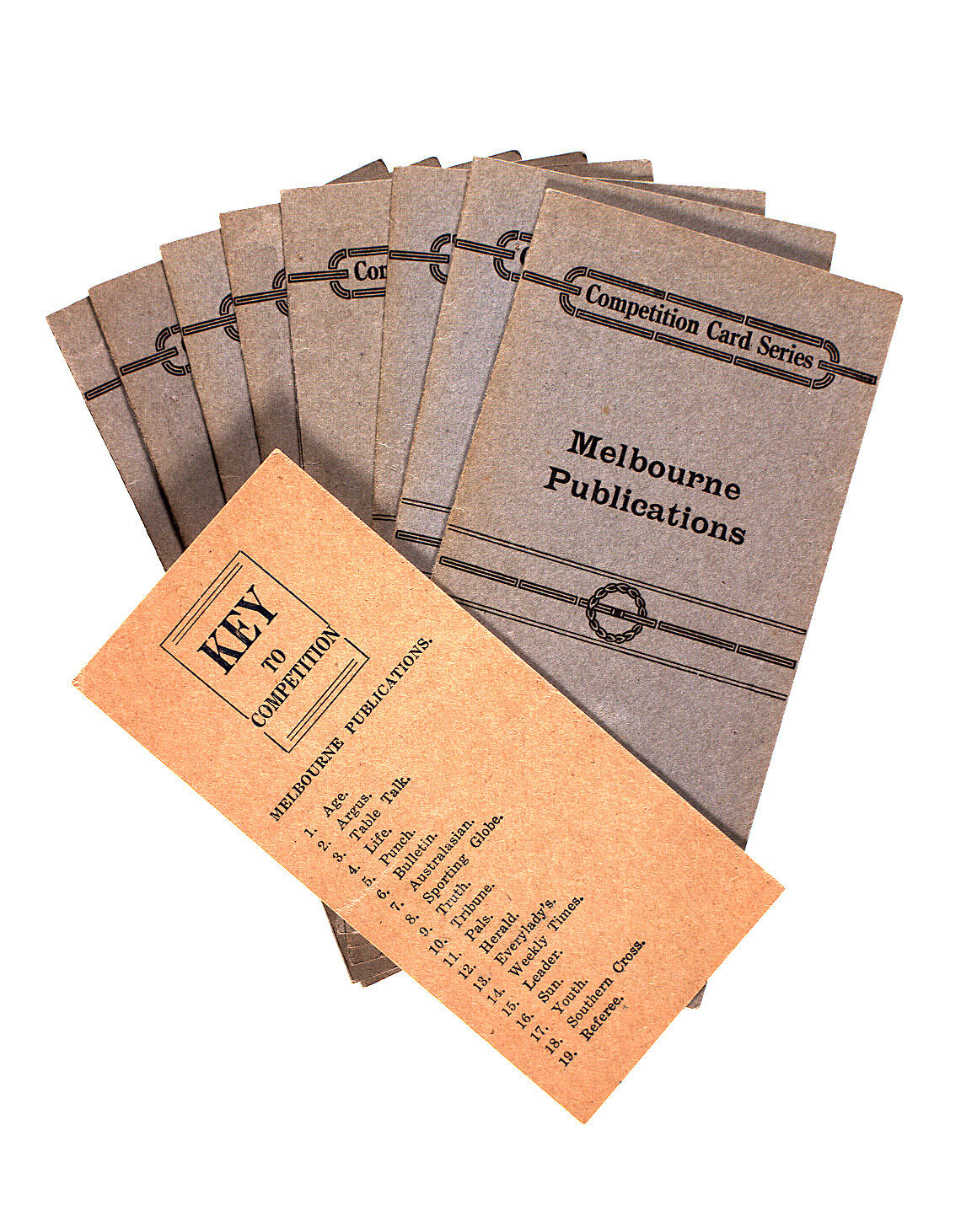 Text: KEY/TO/COMPETITION/MELBOURNE PUBLICATIONS. Other cards: Competition Card Series/Melbourne/Publications.