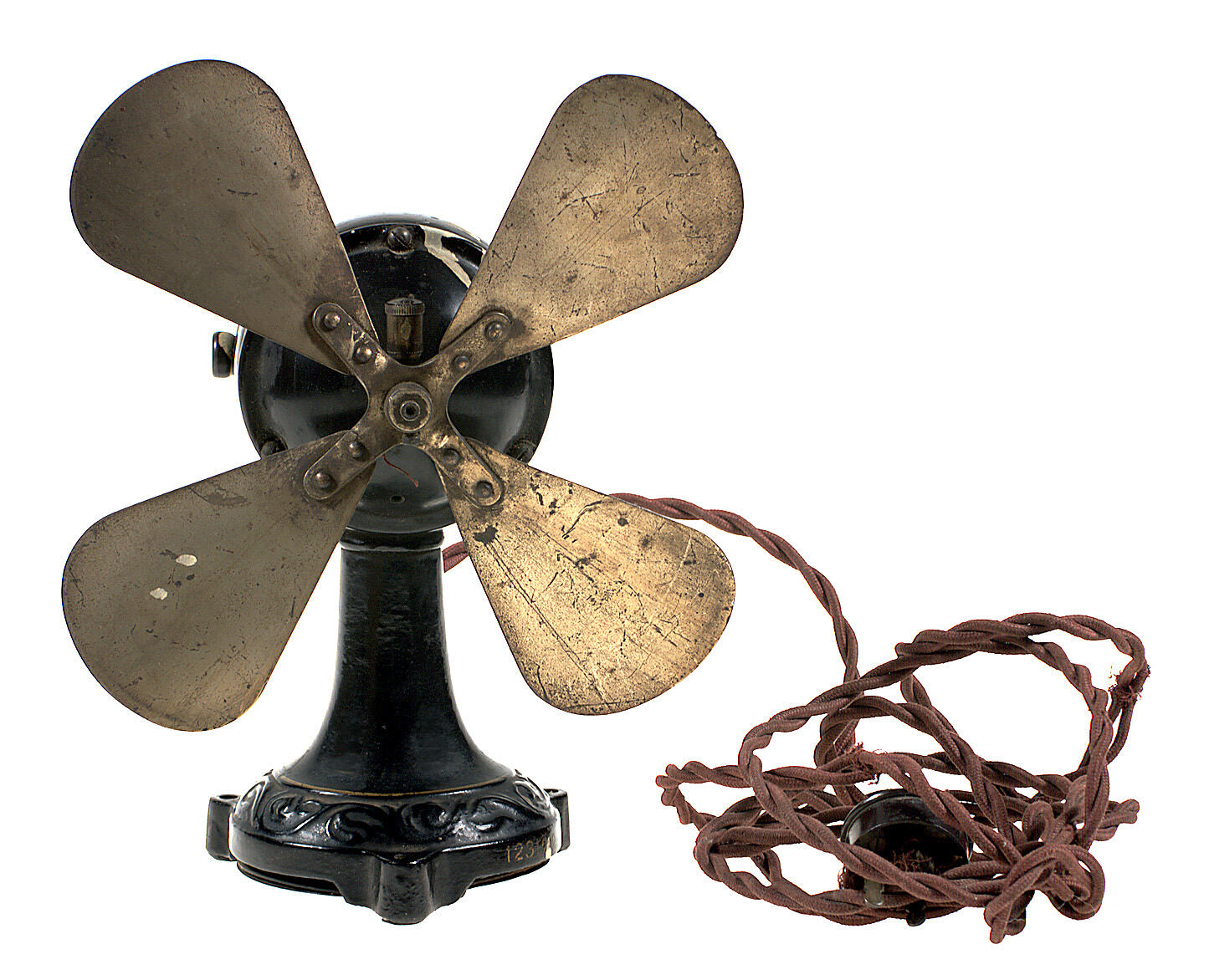 Electric fan, part of the Simpson's Gloves Collection. It was used circa 1920, and was found in small storeroom downstairs at Simpson's in 1989, after the business closed.
