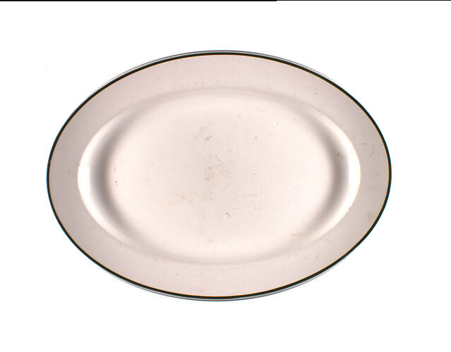 Cream ceramic serving plate used in the dining rooms at a mental health hospital, Caloola Training Centre, Sunbury, Victoria, Australia, circa 1930