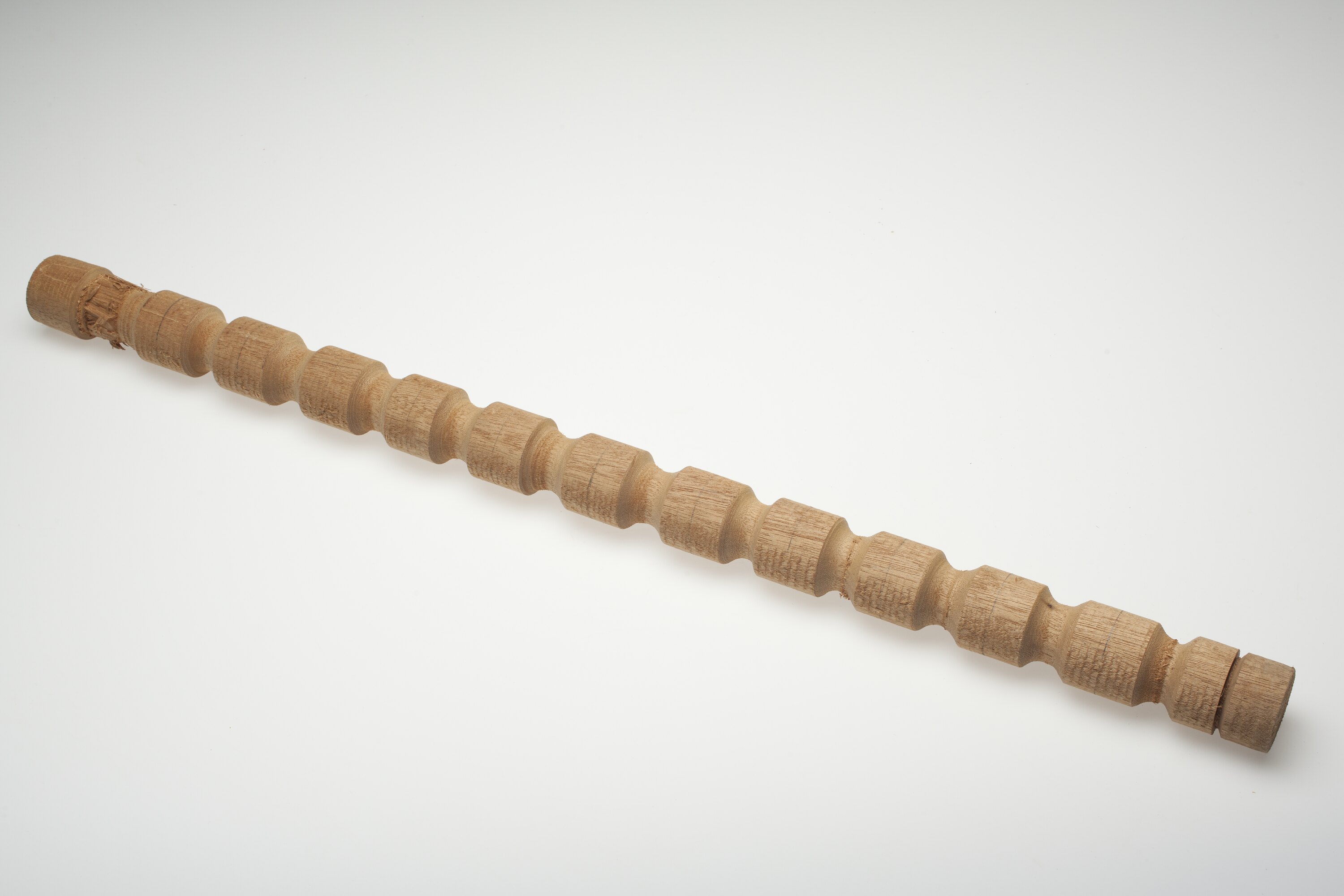 Roughly turned piece, turned along the full length with sections that alternate in depth.