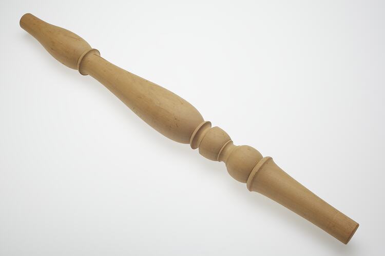 Wooden furniture piece created by Adolph Bruhn & Son, circa 1970 - 1990. It was found in Area A at Adolph Bruhn & Son's Wood Turners Shop, 283 Coventry Street, South Melbourne. The business was established by Adolph Bruhn circa 1893 in Little Collins Street, Melbourne. Upon his death in 1919 it was then operated by Adolph's son Sophus Christopher Bruhn. Upon Sophus's death in 1959 his son Sophus Walter Bruhn took over the business. In 1970 Sophus reduced the scale of the business and relocated to South Melbourne. The business closed upon Sophus's death in January 1990.