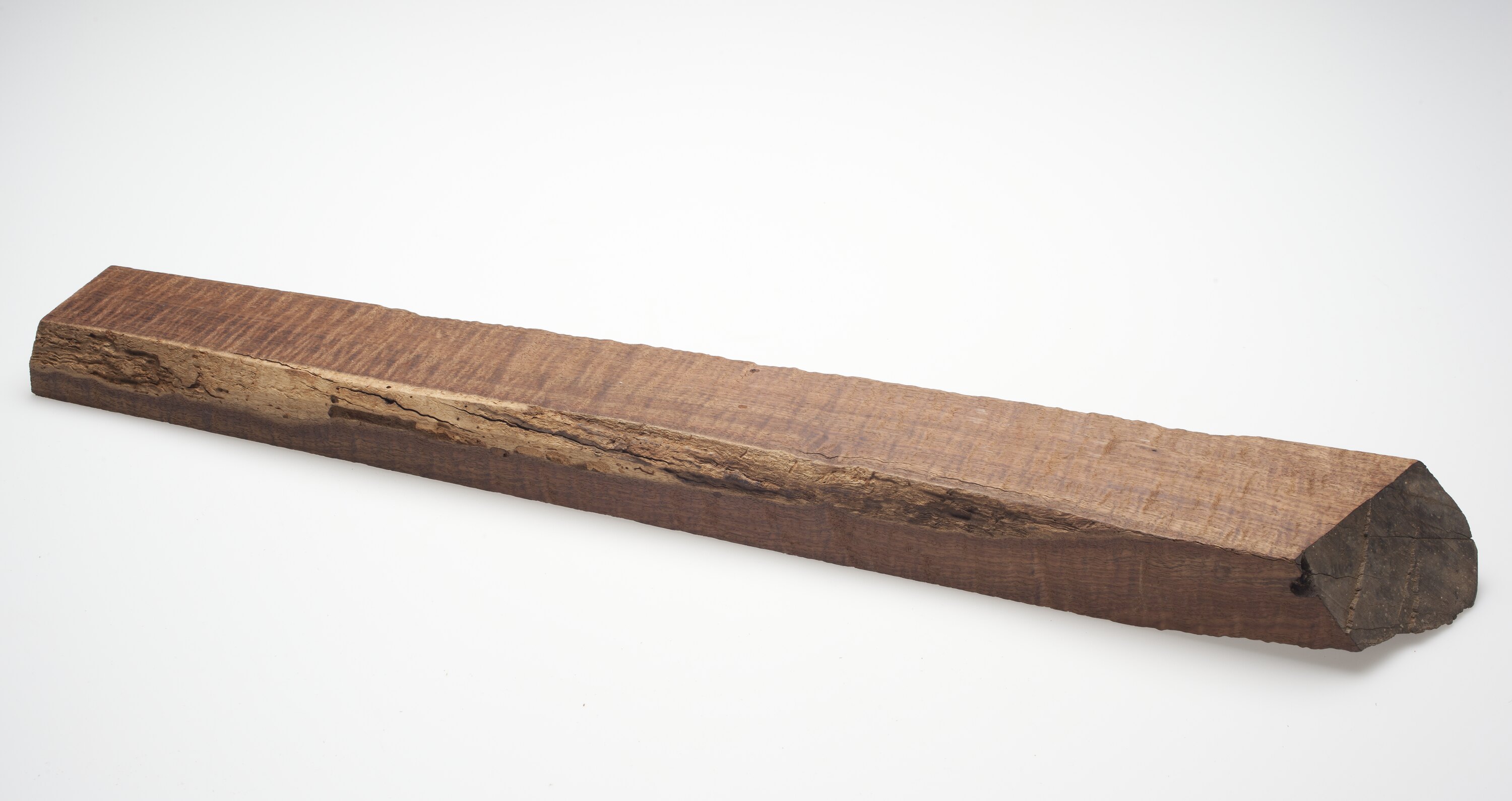 Short piece of glossy, chestnut-coloured timber.