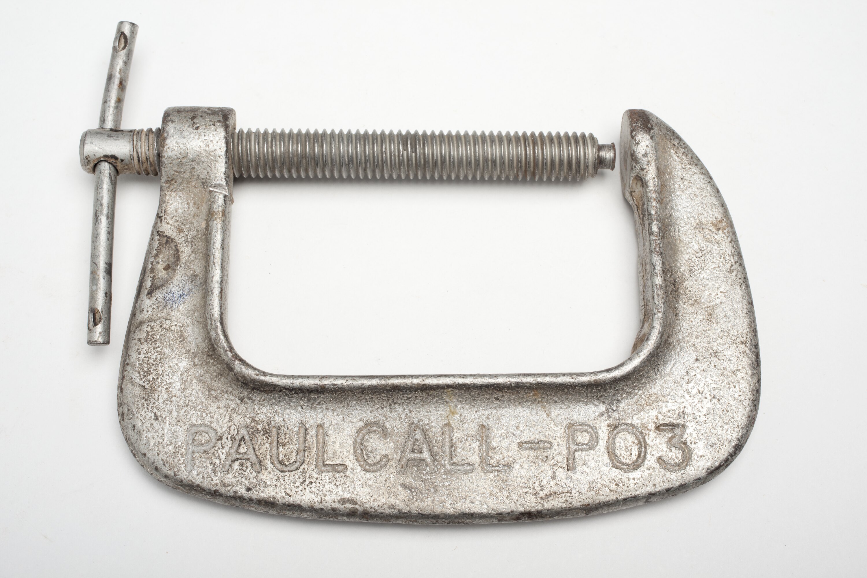 'Paulcall' brand G Clamp, manufactured by Paul's (Merchants) Pty Ltd, Sydney, New South Wales, Australia, circa 1955-1975. Paul's operated to hardware stores in central Sydney at 314 Pitt Street & 445 George Street, and operated a factory in Bankstown, where tools such as clamps and woodworking machinery were manufactured for sale through hardware stores throughout Australia