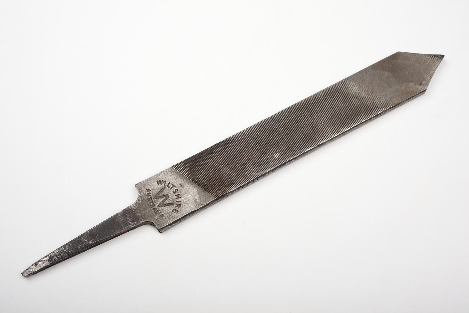 Mill File manufactured by Wiltshire, circa 1975-1985. It would have been used to sharpen cutting tools and was taken from Area D4 at Adolph Bruhn & Son's Wood Turners Shop, 283 Coventry Street, South Melbourne. The business was established by Adolph Bruhn circa 1893 in Little Collins Street, Melbourne. Upon his death in 1919 it was then operated by Adolph's son Sophus Christopher Bruhn. Upon Sophus's death in 1959 his son Sophus Walter Bruhn took over the business. In 1970 Sophus reduced the scale of the business and relocated to South Melbourne. The business closed upon Sophus's death in January 1990.